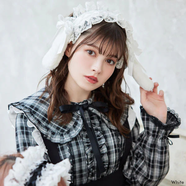 垂れ下がったリボンは、頭の後ろで結んだり、顎の下で結ぶと更にロリータ感が出て可愛いよ♪