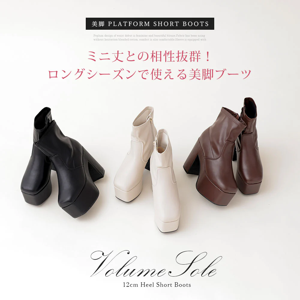 12cm厚底ストレッチショートブーツ【大きいサイズ有】