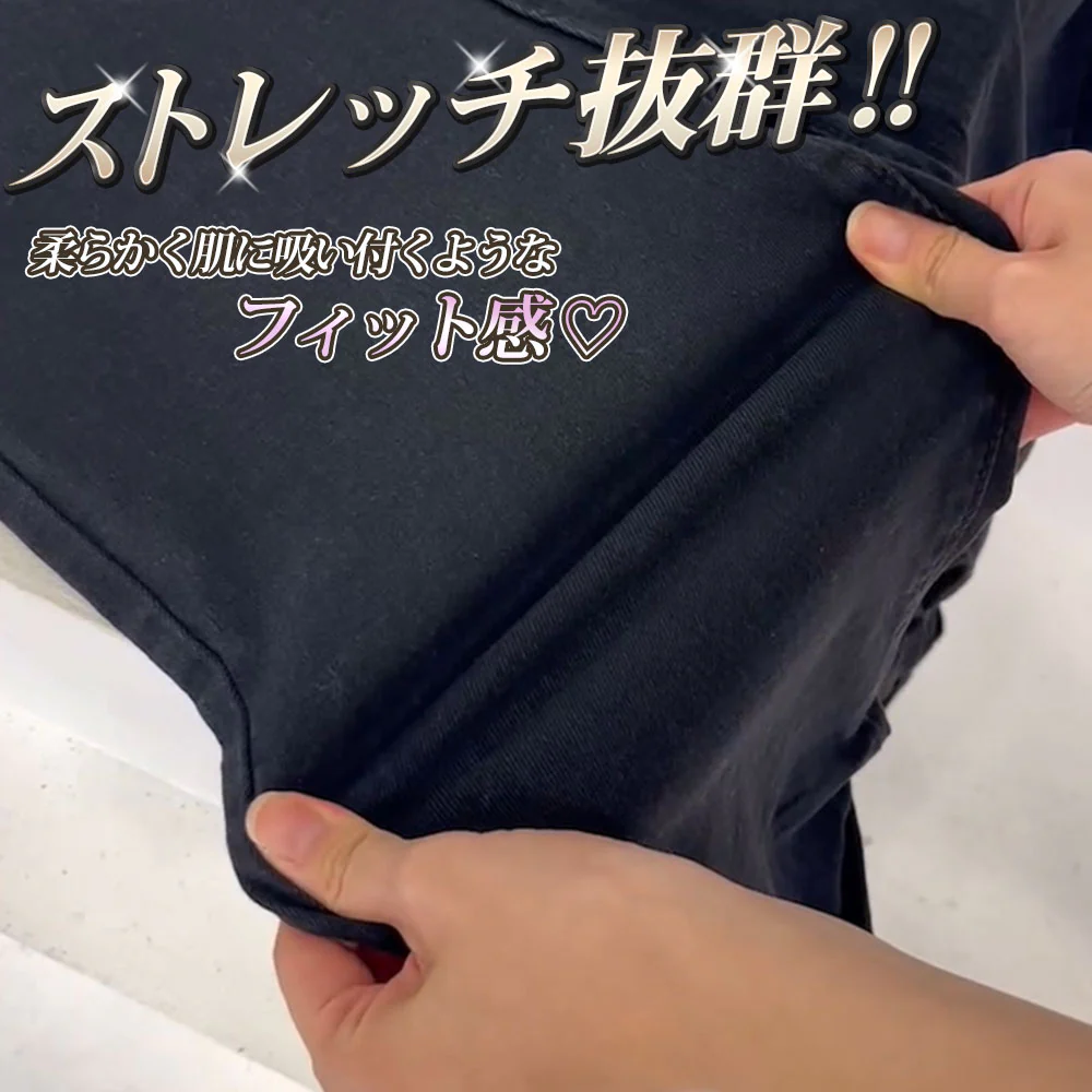 裾くしゅくしゅ極伸びストレッチフレアパンツ